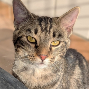 TARIE Femelle Naissance : 01/06/2025 Refuge depuis : 06/08//2025 Vaccinée, vermifugée, identifiée, stérilisée, testée Felv- et Fiv- OK : chats, enfants Visible à la Spa les Amandiers Lavilledieu Ardèche 04 75 94 27 05 Merci de téléphoner directement au refuge pour convenir d'un rdv, afin de pouvoir la rencontrer. Participation adoption : 180€ TARIE est arrivée au refuge cet été à l'âge approximatif de 2 mois. N'ayant pas trouvé sa famille elle est maintenant en grande chatterie après sa stérilisation. Tarie est une jolie et jeune minette encore bien timide. Sans agressivité, elle est plutôt fuyante quand elle ne connait pas. Tarie aura juste besoin d'adoptants patients, doux, calmes et conscients qu'un chat craintif à besoin d'aller à son rythme pour pouvoir s'épanouir. Tarie espère les trouver rapidement.