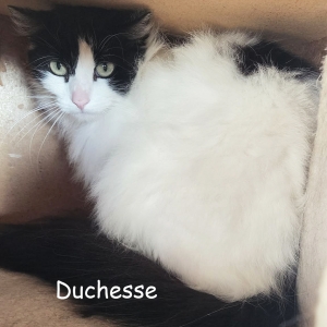 DUCHESSE Femelle Naissance : 05/03/2023 Refuge depuis : 02/12/2025 Vaccinée, vermifugée, identifiée, stérilisée, testée Felv- et Fiv- OK : chats, enfants Visible à la Spa les Amandiers Lavilledieu Ardèche 04 75 94 27 05 Merci de téléphoner au refuge pour convenir d'un rdv afin de la rencontrer (les visites se font uniquement les après-midi du lundi au samedi) Participation adoption : 180€ DUCHESSE a été trouvée sur la commune d'Aubenas, non réclamée, elle est à l'adoption. Duchesse est une jolie minette aux poils mi-longs et à la truffe toute rose. Gentille, elle est un peu timide mais se laisse caresser. Il lui faut juste un peu de temps pour s'adapter, pour voir qu'elle peut faire confiance. Duchesse espère trouver rapidement la famille qui lui offrira une belle vie.