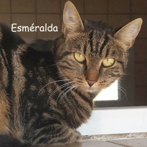 ESMÉRALDA Femelle Naissance : 01/05/2023 Refuge depuis : 20/09/2025 Vaccinée, vermifugée, identifiée, stérilisée, testée Felv- et Fiv- OK : chats, enfants Visible à la Spa les Amandiers Lavilledieu Ardèche 04 75 94 27 05 Merci de téléphoner au refuge pour convenir d'un rdv afin de la rencontrer (les visites se font uniquement les après-midi du lundi au samedi) Participation adoption : 180€ ESMÉRALDA a été trouvée sur la commune d'Asperjoc, non réclamée, elle est à l'adoption. Jolie minette tigrée, Esméralda est gentille et câline. Elle apprécie les caresses et les attentions. Elle espère trouver rapidement la famille qui lui donnera sa chance, qui lui apportera amour et respect.
