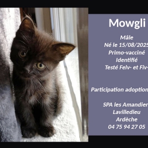 Petit et mignon MOWGLI est à l'adoption Une vraie petite pile électrique, plein de vie, de joie et de jeux ( et les bêtises qui vont avec). Mowgli aura besoin d'un grand frère d'une grande sœur ( ou les 2 pourquoi pas) pour l'aider à se canaliser. Il recherche une famille sérieuse et responsable et pas une famille qui s'attend à adopter une peluche. Mowgli bouge, mordille, a des griffes et va très vite grandir. Mowgli est identifié, testé Felv- et Fiv- CASTRATION OBLIGATOIRE dès qu'il aura l'âge. Pour venir le rencontrer il faut téléphoner au refuge pour convenir d'un rdv, il se trouve jusqu'à samedi 16/10/2025 chez sa famille d'accueil, puis sera visible au refuge. Spa les Amandiers Lavilledieu 04 75 94 27 05