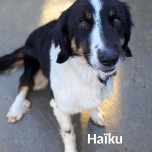 HAÏKU Femelle Berger croisée border Taille : moyenne Naissance : 08/05/2020 Refuge depuis : 12/12/2025 Vaccinée, vermifugée, identifiée, stérilisée OK : chiens, enfants OK chats (à confirmer, elle vivait avec des chats) ** Les tests chats faits dans les conditions du refuge ne sont pas certifiés à 100% Visible à la Spa les Amandiers Lavilledieu Ardèche 04 75 94 27 05 Merci de téléphoner au refuge pour Convenir d'un rdv afin de la rencontrer (les visites se font uniquement les après-midi du lundi au samedi) Participation adoption : 250€ HAÏKU est arrivée au refuge pour y trouver une famille aimante et respectueuse. Jolie et gentille chienne, Haïku est sympa, dynamique, pleine de joie de vivre. Elle semble en box un peu dominante envers ses congénères ( à voir à la longue). Haïku espère que de supers adoptants sauront la rendre heureuse.